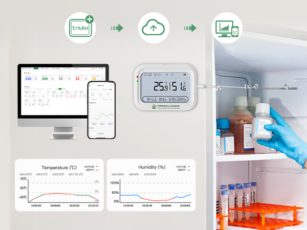 A truly excellent refrigerator real-time temperature alarm manufacturer not only provides hardware but also a complete professional cold chain monitoring solution. Freshliance real-time temperature data loggers can be configured with parameters according to needs, external probes can be freely wired, and API interfaces are available, providing professional solutions to ensure the long-term stable operation of refrigerators in various industries, promptly detect anomalies, adjust refrigerator performance, and reduce management costs.
